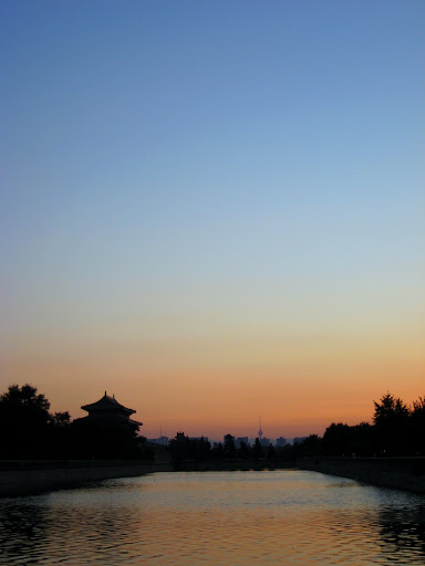昨晚北京的筒子河。能见度极高,可以清晰看到远处的中央电视塔。